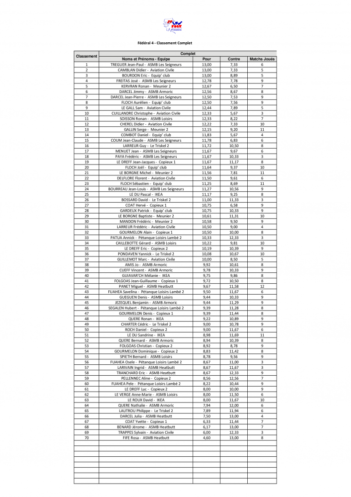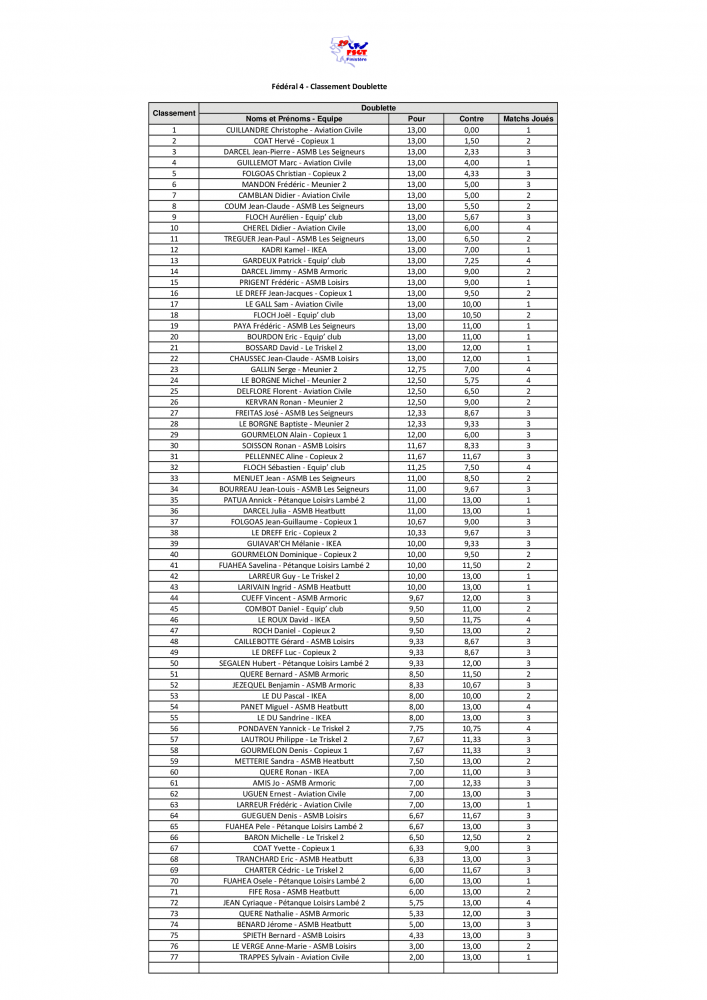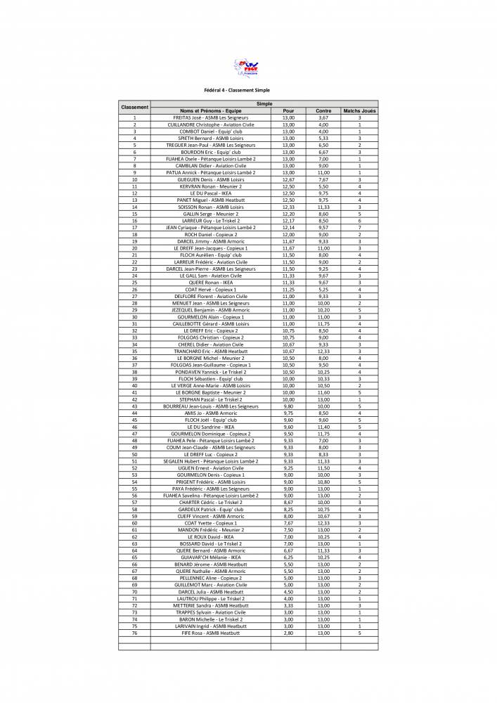 Voici les différents classements des joueurs de Fédéral 4 à l’issue de la troisième journée :